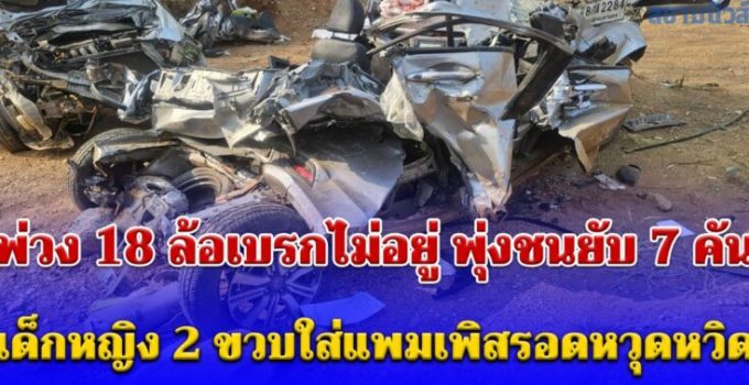เกิดอุบัติเหตุหมู่บนถนนพหลโยธิน เส้นทางตาก–ลำปาง ขาขึ้น บริเวณตรงข้ามทางเข้าอุทยานแห่งชาติแม่วะ อำเภอเถิน จังหวัดลำปาง พบรถชนต่อเนื่องกันหลายคัน รวมความเสียหายประมาณ 7 คัน สภาพรถแต่ละคันพังยับเยิน ในที่เกิดเหตุพบรถกระบะ Mazda สีดำ รถเก๋ง Honda หลายคัน รถ Toyota สีขาว และรถพ่วง 18 ล้อบรรทุกสุขภัณฑ์ ทะเบียนจังหวัดสระบุรี ซึ่งเป็นต้นเหตุของอุบัติเหตุครั้งนี้ โดยบริเวณดังกล่าวอยู่ระหว่างมีการซ่อมแซมผิวจราจร ทำให้รถด้านหน้าชะลอและจอดต่อแถว จากการสอบสวนเบื้องต้นทราบว่า รถพ่วง 18 ล้อขับมาด้วยความเร็วสูง เมื่อมาถึงจุดเกิดเหตุไม่สามารถเบรกได้ทัน พุ่งชนรถที่จอดอยู่ด้านหน้าอย่างแรง ส่งผลให้รถหลายคันถูกอัดก็อปปี้และกระเด็นไปคนละทิศละทาง เหตุการณ์ดังกล่าวมีผู้เสียชีวิตในที่เกิดเหตุ 2 ราย เป็นสามีภรรยาที่โดยสารมากับรถเก๋ง Honda สีบรอนซ์เงิน ขณะที่ลูกสาวของทั้งคู่...