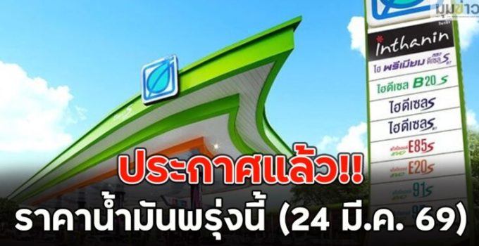 ราคาน้ำมันพรุ่งนี้ (24 มี.ค. 69) ปตท. บางจาก อัปเดตราคาล่าสุด กลุ่มน้ำมันเบนซิน เบนซิน ลิตรละ 41.64 บาท ซุปเปอร์เพาเวอร์ แก๊สโซฮอล์ 95 ลิตรละ 42.04 บาท (โออาร์) แก๊สโซฮอล์ 97 ลิตรละ 49.54 บาท (บางจาก) แก๊สโซฮอล์ 95 ลิตรละ 33.05 บาท แก๊สโซฮอล์ 91 ลิตรละ 32.68 บาท แก๊สโซฮอล์ E20 ลิตรละ 278.05 บาท แก๊สโซฮอล์...