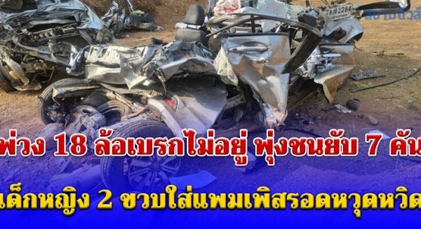 เกิดอุบัติเหตุหมู่บนถนนพหลโยธิน เส้นทางตาก–ลำปาง ขาขึ้น บริเวณตรงข้ามทางเข้าอุทยานแห่งชาติแม่วะ อำเภอเถิน จังหวัดลำปาง พบรถชนต่อเนื่องกันหลายคัน รวมความเสียหายประมาณ 7 คัน สภาพรถแต่ละคันพังยับเยิน ในที่เกิดเหตุพบรถกระบะ Mazda สีดำ รถเก๋ง Honda หลายคัน รถ Toyota สีขาว และรถพ่วง 18 ล้อบรรทุกสุขภัณฑ์ ทะเบียนจังหวัดสระบุรี ซึ่งเป็นต้นเหตุของอุบัติเหตุครั้งนี้ โดยบริเวณดังกล่าวอยู่ระหว่างมีการซ่อมแซมผิวจราจร ทำให้รถด้านหน้าชะลอและจอดต่อแถว จากการสอบสวนเบื้องต้นทราบว่า รถพ่วง 18 ล้อขับมาด้วยความเร็วสูง เมื่อมาถึงจุดเกิดเหตุไม่สามารถเบรกได้ทัน พุ่งชนรถที่จอดอยู่ด้านหน้าอย่างแรง ส่งผลให้รถหลายคันถูกอัดก็อปปี้และกระเด็นไปคนละทิศละทาง เหตุการณ์ดังกล่าวมีผู้เสียชีวิตในที่เกิดเหตุ 2 ราย เป็นสามีภรรยาที่โดยสารมากับรถเก๋ง Honda สีบรอนซ์เงิน ขณะที่ลูกสาวของทั้งคู่...