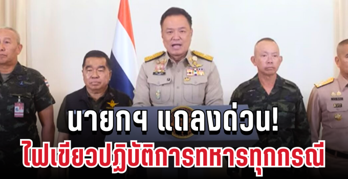 วันที่ 8 ธันวาคม 2568 นายอนุทิน ชาญวีรกูล นายกรัฐมนตรี และรมว.มหาดไทย แถลงผ่านโทรทัศน์รวมการเฉพาะกิจแห่งประเทศไทย จากทำเนียบรัฐบาล เพื่อแจ้งสถานการณ์บริเวณชายแดนไทย-กัมพูชาให้ประชาชนได้รับทราบ เมื่อเวลา 12.30 น. นายกรัฐมนตรีกล่าวว่า ตั้งแต่วันที่ 7 ธันวาคม 2568 จนถึงปัจจุบัน ได้เกิดการปะทะในหลายจุดตลอดแนวชายแดนไทย-กัมพูชา รัฐบาลติดตามทุกความคืบหน้าอย่างใกล้ชิด พร้อมสั่งการให้หน่วยงานด้านความมั่นคงทำงานร่วมกันอย่างเข้มข้น เพื่อคุ้มครองความปลอดภัยของประชาชน และรักษาอธิปไตยของไทยอย่างเข้มงวด รัฐบาลยืนยันว่า ประเทศไทยจะปกป้องอธิปไตยและบูรณภาพแห่งดินแดนตามหลักกฎหมายระหว่างประเทศ รวมถึงสิทธิในการป้องกันตนเองอย่างถูกต้อง และในวันนี้มีการประชุมสภาความมั่นคงแห่งชาติ ซึ่งมีมติว่า รัฐบาลจะดำเนินการตามแนวทางของสภาความมั่นคงแห่งชาติ โดยให้มีปฏิบัติการทางทหารในทุกกรณีที่สอดคล้องกับสถานการณ์ และดำเนินการด้านความมั่นคงอื่น ๆ ที่จำเป็น นายกรัฐมนตรีระบุว่า รัฐบาลมีความเชื่อมั่นเต็มที่ในศักยภาพของกองทัพไทย ซึ่งปฏิบัติหน้าที่ด้วยความรอบคอบ ยึดหลักการใช้กำลังอย่างเหมาะสม และคำนึงถึงหลักมนุษยธรรมในการดูแลประชาชนและรักษาความสงบเรียบร้อยในพื้นที่ชายแดน พร้อมกันนี้ รัฐบาลส่งความห่วงใยไปยังประชาชนที่ต้องอพยพเข้าสู่ศูนย์พักพิงชั่วคราว...
