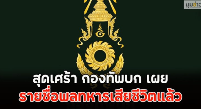 กองทัพบก เปิดเผยรายชื่อพลทหารเสียชีวิตในเหตุปะทะชายแดน ยอดรวม 3 นาย หลังจากที่วันนี้ (9ธันวาคม) เสียชีวิตเพิ่มอีก 2 นาย กองทัพบก รับรายงานจากกองกำลังสุรนารี กองทัพภาคที่ 2 ว่าวันนี้ (9 ธ.ค.) มียอดกำลังพลเสียชีวิตเพิ่ม 2 นาย โดยรายชื่อพลทหารที่เสียชีวิตได้แก่ 1.พลทหาร วายุ ขวัญเสือ สังกัด กองพันทหารราบที่ 3 กรมทหารราบที่ 31 รักษาพระองค์ ได้รับบาดเจ็บโดนสะเก็ดระเบิดอาวุธวิถีโค้ง พื้นที่ฐานปฏิบัติการ 225 จ.สุรินทร์ 2.ส.อ.ชวกร เดชขุนทด สังกัดกองพันทหารม้าที่ 11 กรมทหารม้าที่ 4 รักษาพระองค์ บาดเจ็บจากเครื่องยิงลูกระเบิด...