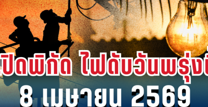 วันที่ 8 เมษายน 2569 การไฟฟ้านครหลวง (กฟน.) ประกาศว่า มีความจำเป็นต้อง ดับไฟ ในพื้นที่กรุงเทพมหานครและนนทบุรี เพื่อพัฒนาหรือบำรุงรักษาระบบการจ่ายกระแสไฟฟ้าให้มีประสิทธิภาพยิ่งขึ้น และเพื่อความปลอดภัยในการปฏิบัติงาน กฟน. จึงจำเป็นต้องงดจ่ายกระแสไฟเป็นการชั่วคราวใน 5 จุด ดังนี้ กรุงเทพมหานคร – ถนนสุขุมวิท ซอยสุขุมวิท 62 ,ซอยสุขุมวิท 62 แยก1,แยก1-2 และ แยก2 เวลา 09.00 น. – 14.00 น. – ริมถนนบรมราชชนนี บริเวณหน้าปั๊ม PT ซ.บรมราชชนนี 91 ถึง ซ.บรมราชชนนี...