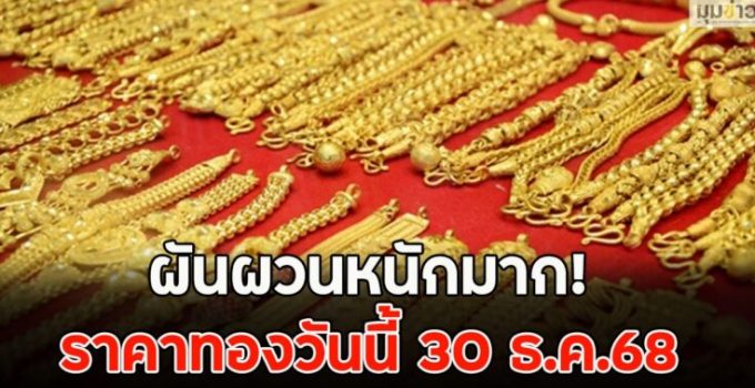 ราคาทองคำประจำวันที่ 30 ธ.ค.2568 ร่วงลง 1,350 บาท เมื่อเทียบกับราคาปิดวานนี้ ทองรูปพรรณขายออกที่บาทละ 65,950 บาท อ้างอิงข้อมูลล่าสุดจากสมาคมค้าทองคำ ที่เผยแพร่ผ่านทางเว็บไซต์ เมื่อเวลา 9.02 น. สรุป ราคาทองวันนี้ 30 ธ.ค.2568 ขายออก บาทละ 65,150 บาท ทองรูปพรรณ รับซื้อ บาทละ 63,747.80 บาท ขายออก บาทละ 65,950.00 บาท...